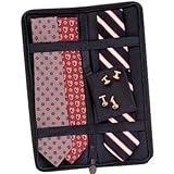 This Travel Tie Case (Holds 6 Neck Ties) w/ Accessory Pocket Black Ramie - Household Essentials 6704 holds up to six of your ties, with a zippered pouch for your cuff links and tie tacks. The padded, cushioned lining helps to keep the ties from wrinkling, while the elastic straps hold them in place. Of course the ties are not included. This organizer is wonderful for people on the go, those who want to be organized when they travel. It is not fancy or fussy but is functional, a great quality and value priced. A perfect gift item.Household Essentials (formerly Whitney Design) specializes in designing innovative Laundry, Closet, Bath and Kitchen storage and organizational products. Their mission is to create solutions that make your day-to-day activities easier and more enjoyable.Size: 17L x 6W x 2D Inches -- Color: Black